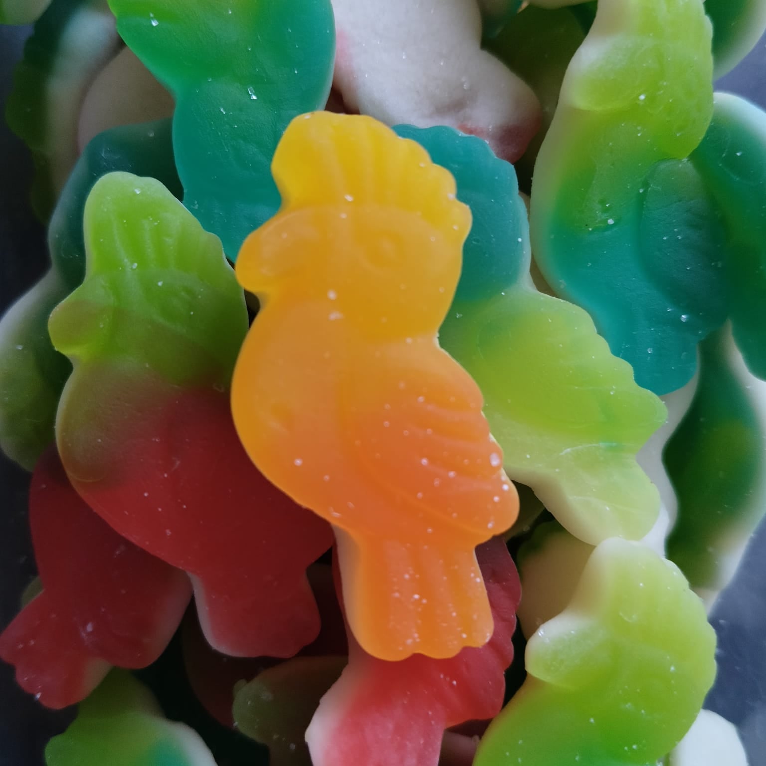 Descubram esta espécie colorida e energética com estas gomas em forma de araras. Quantas vais conseguir colocar numa gaiola e guardar para mais tarde?