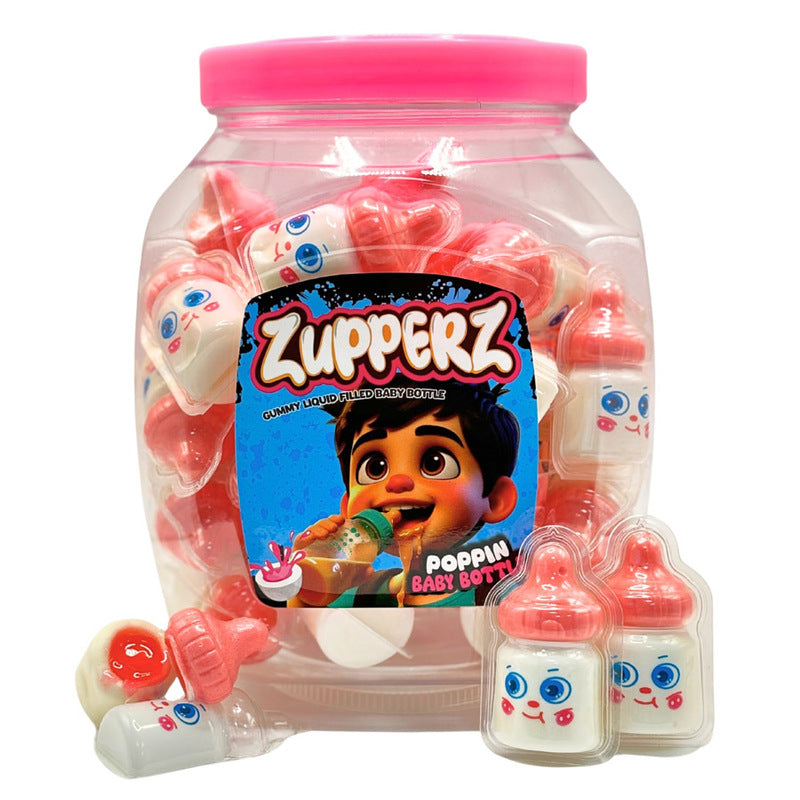 Mini biberões de goma com recheio líquido e cremoso. São doces, divertidos e cheios de sabor. uma nostalgia deliciosa que enche o paladar como um verdadeiro biberão.