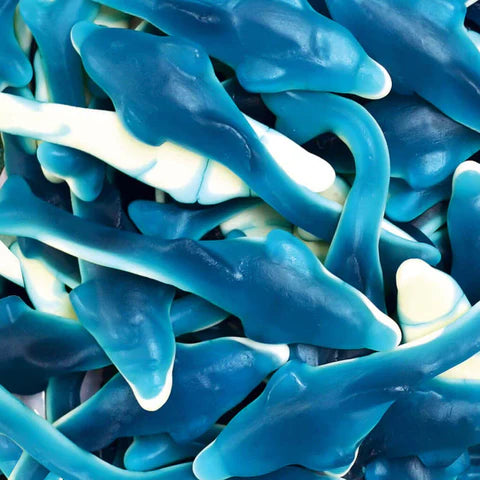 Estas gomas transportam-nos para um espetáculo aquático onde o treinador serás tu! Diverte-te a brincar e a trincar estas deliciosas gomas em forma de golfinho e de formato extra grande. Complementa o teu zoo marinho com as nossas outras gomas em forma de animais aquáticos, e monta os teus próprios aquários de doces.