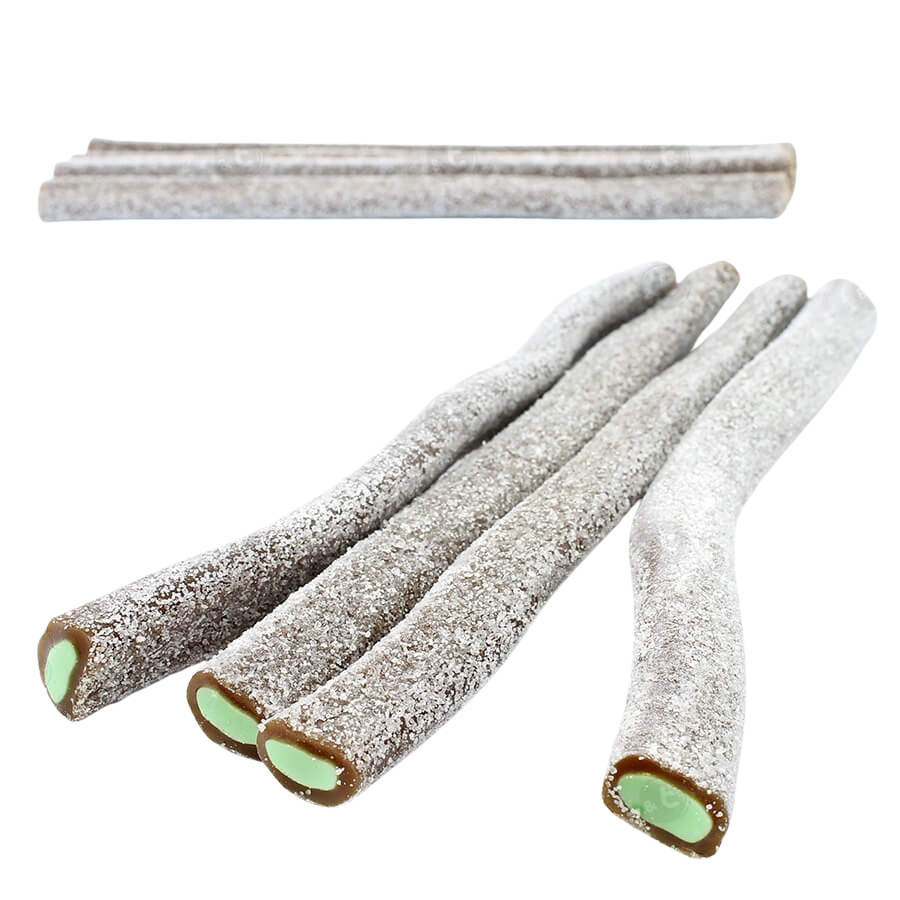 Gomas extralongas que combinam uma textura macia com um recheio cremoso. Agora com uma variante ácida e de sabor a coca-cola.