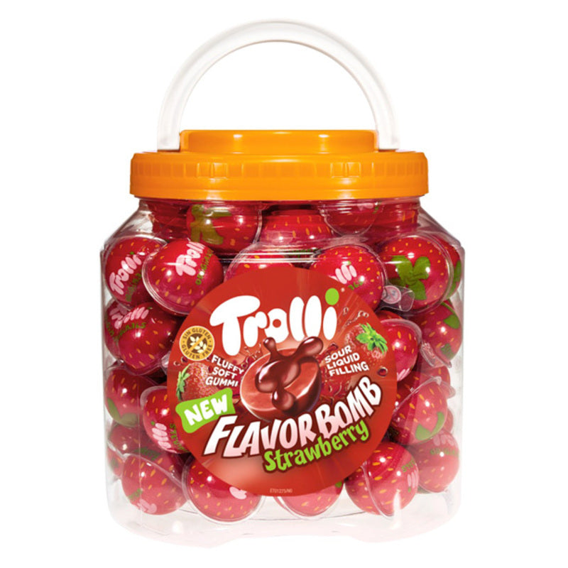 Gomas redondas e coloridas que surpreendem com o seu recheio líquido ácido, que oferecem uma experiência intensa e divertida a cada dentada - sabor a morango.