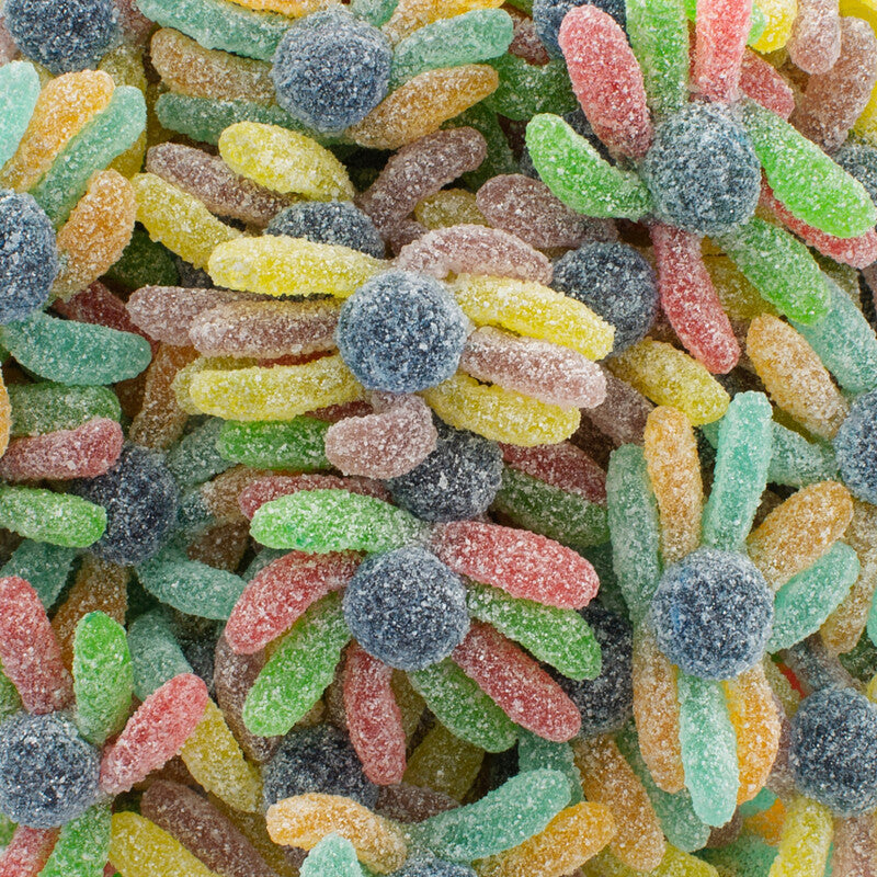 Divertidos polvos multi coloridos e de multi sabores ácidos, para que cada dentada seja uma experiência única. Complementa o teu zoo marinho com as nossas outras gomas em forma de animais aquáticos, e monta os teus próprios aquários de doces.
