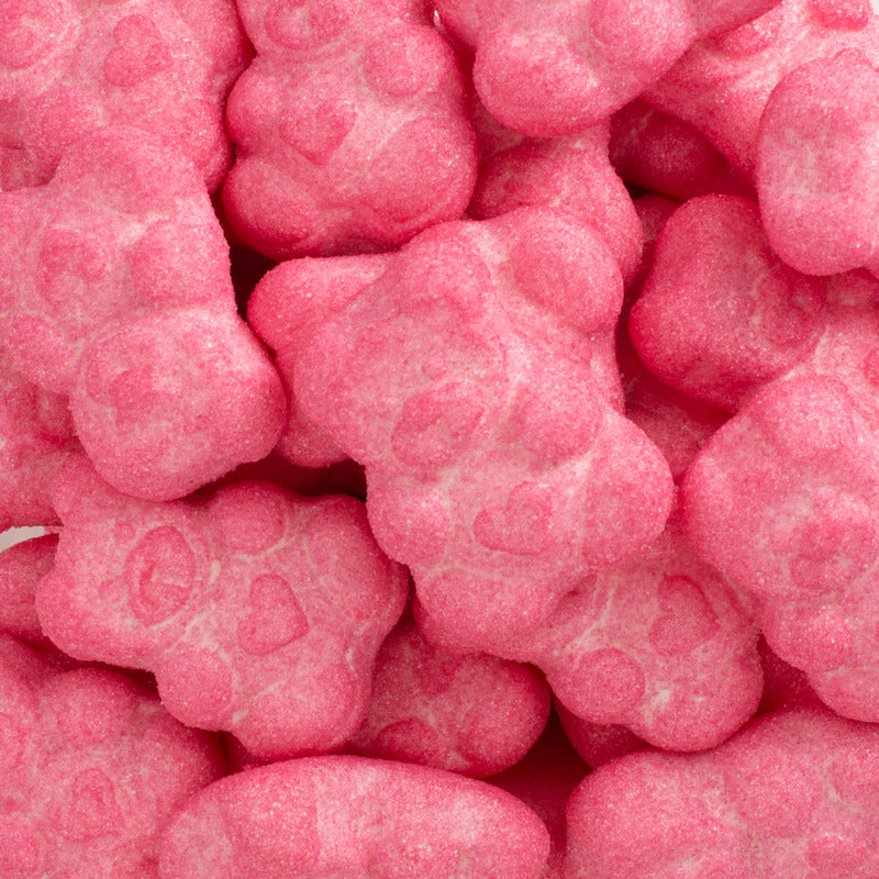 Doces, macios e irresistivelmente fofos. Marshmallows que derretem na boca e adoçam qualquer momento. Agora extra carinhosos com este formato de ursinhos rosas com sabor a morango, perfeitos para uma festa de pijama ou babyshower.